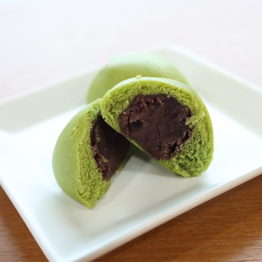 掛川抹茶を皮に練りこんだお饅頭ができました。あんこの味を邪魔しない皮で上品な抹茶が香ります。常温保存でOKです!